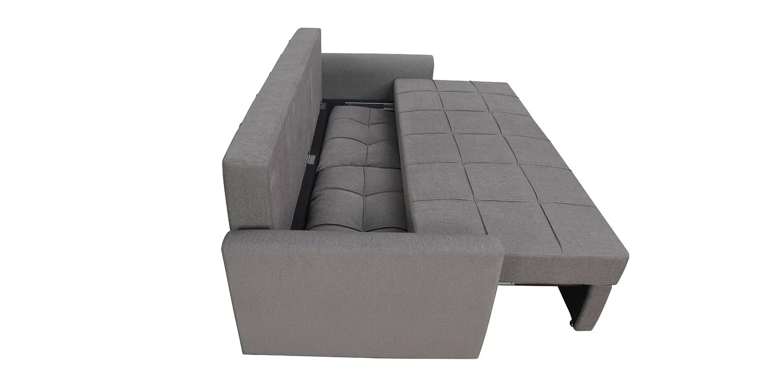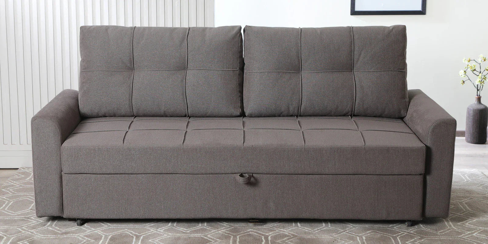 Fabric Pull Out Sofa Cum Bed In Sandy Brown Colour With Storage