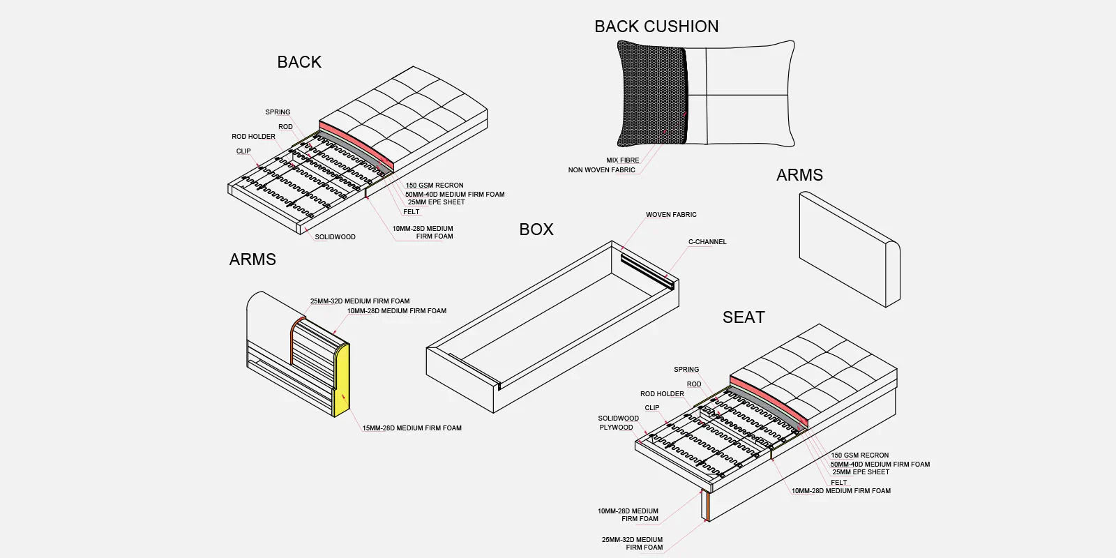 · Foam Density : HR Foam 40 D