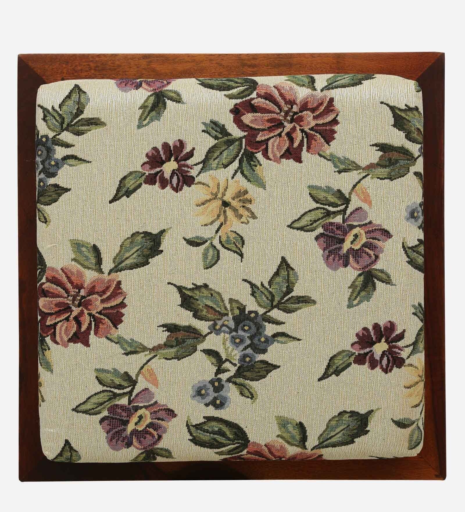 Sheesham Wood Seating Stool In Honey Oak Finish With Multicolor Cushion